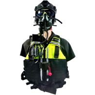 The Tiger WRBA™ is the most advanced assembly of water rescue personal safety equipment. This ensemble enables water rescue personnel to function much safer and at a much higher level than ever before under the most adverse conditions. The rescue personnel can perform hands free rescues while wearing an automatic breathing system for use when under water. Also included is a hands free voice activated radio communication and victim voice amplified speaker/hailer. All components are military grade, IP68 water submersible and non-corrosive.